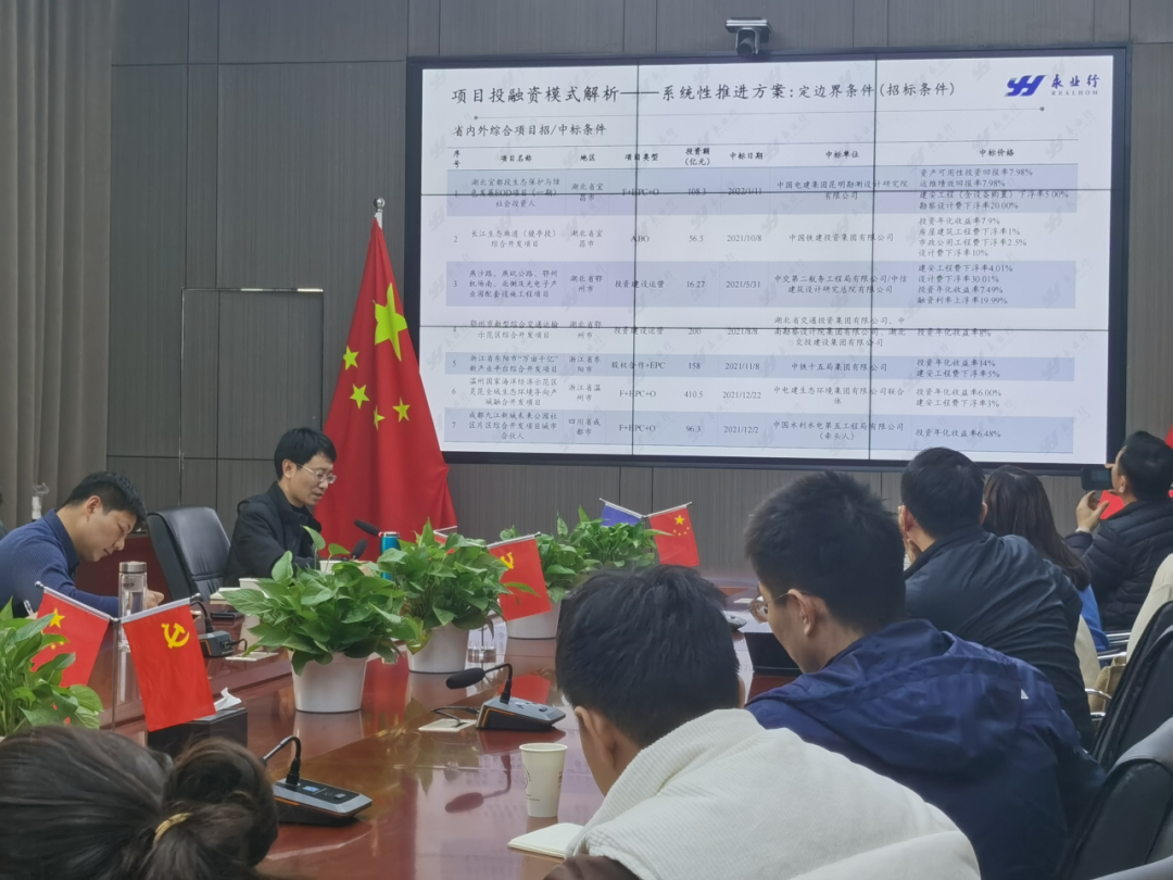 武汉生态永业行总工程师孙聪、武汉市政经营公司阎晓丹、市政机施公司市场营销中心经理王强、市政机施公司一分公司、五分公司、市场部领导及骨干员工,永业行投资金融产业链团队成员等参加本次会议。