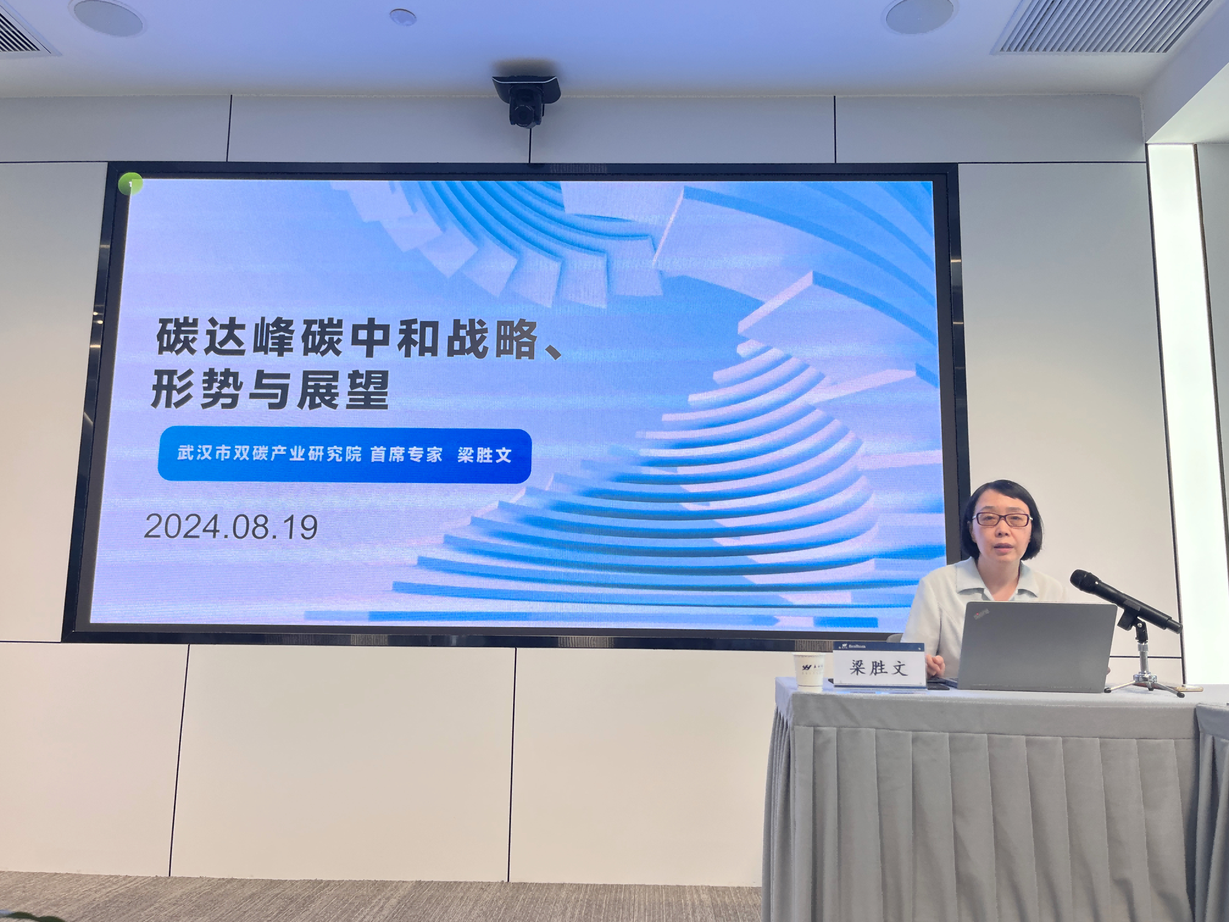 会上,武汉双碳产业研究院副院长梁胜文以“中国碳达峰碳中和战略、形势及趋势”为主题,介绍了碳达峰碳中和目标背景、行动方案和路径、国内外形势以及面临的机遇与挑战;华源电力永业行碳管理咨询部负责人杨青瑞围绕“企业电-碳-金融服务中心”进行了分享交流,介绍了企业碳管理咨询服务、能源服务、绿色金融服务等热点内容。两位专家选题精准、内容丰富、观点鲜明,为与会人员带来了多元化的思想碰撞和深度思考。
