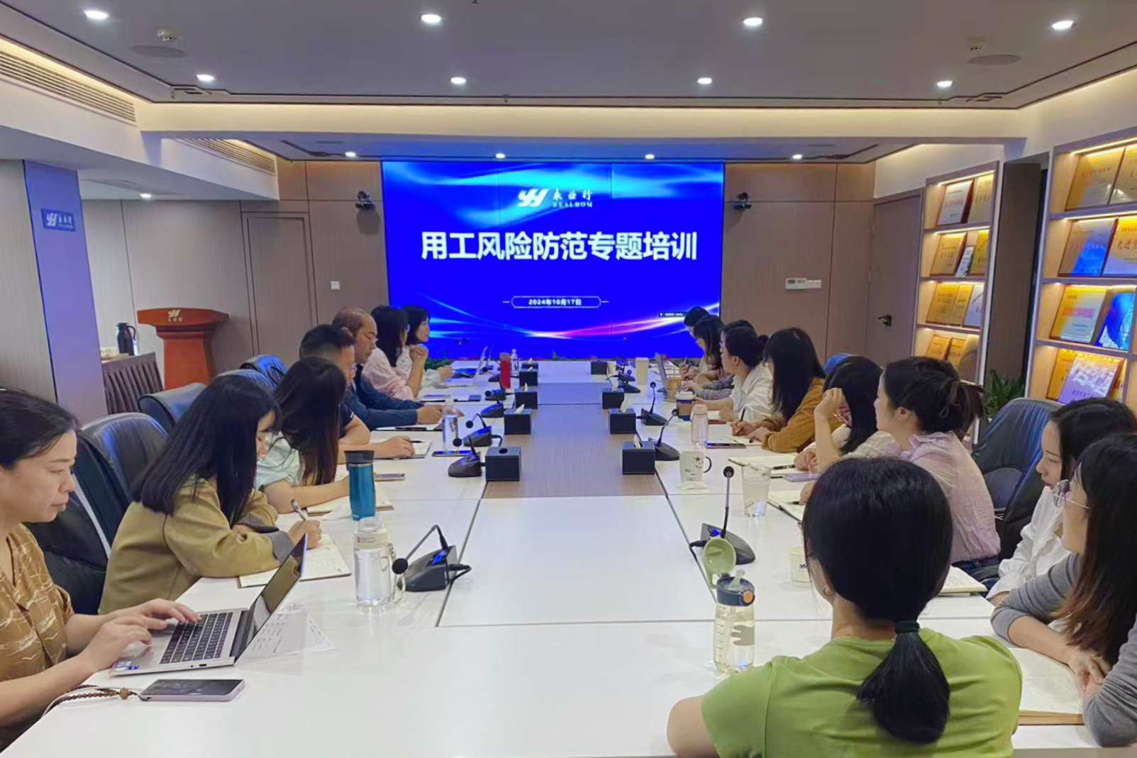 为规范人事管理,防范用工风险,2024年10月17日,永业行邀请北京盈科(武汉)律师事务所、武汉市律协劳动与保障专业委员会委员、武昌区劳动人事争议仲裁委员会首席仲裁员肖雪莲作《劳动用工合规实操技巧》专题培训。永业行常务副总裁吴学锋参加培训并讲话。永业行各职能部门、人事条线代表、组织人事部全员通过线上线下方式参加培训。
