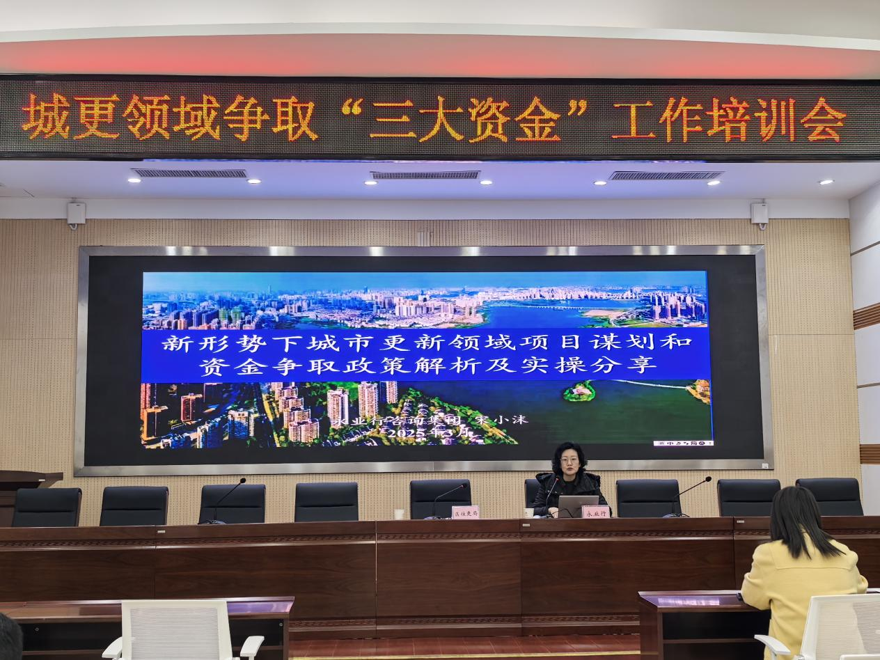 2025年3月10日,武汉市汉阳区住房和城市更新局组织召开“城更领域争取‘三大资金’工作培训会”,区住更局党组成员、副局长张茜主持会议。永业行投资金融事业群金融事业部执行总经理宋小沫受邀作新形势下城市更新领域项目谋划和资金争取政策解析及实操分享。