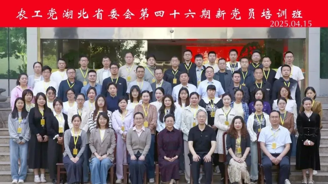 2025年4月15日上午,农工党湖北省委会第四十六期新党员培训班开班仪式在湖北省社会主义学院举行。农工党湖北省委会专职副主委黄惠宁、湖北省社会主义学院党委委员、副院长杨震出席开班仪式并讲话,省委会组织部部长宋亚琼主持开班仪式,来自全省基层组织的60余名新党员参加开班仪式。永业行助理总裁兼鄂东区总经理徐宇初、资源利用事业群业务中心总经理金涛、投资金融事业群研发中心总经理范丽邦作为新党员代表参加培训。