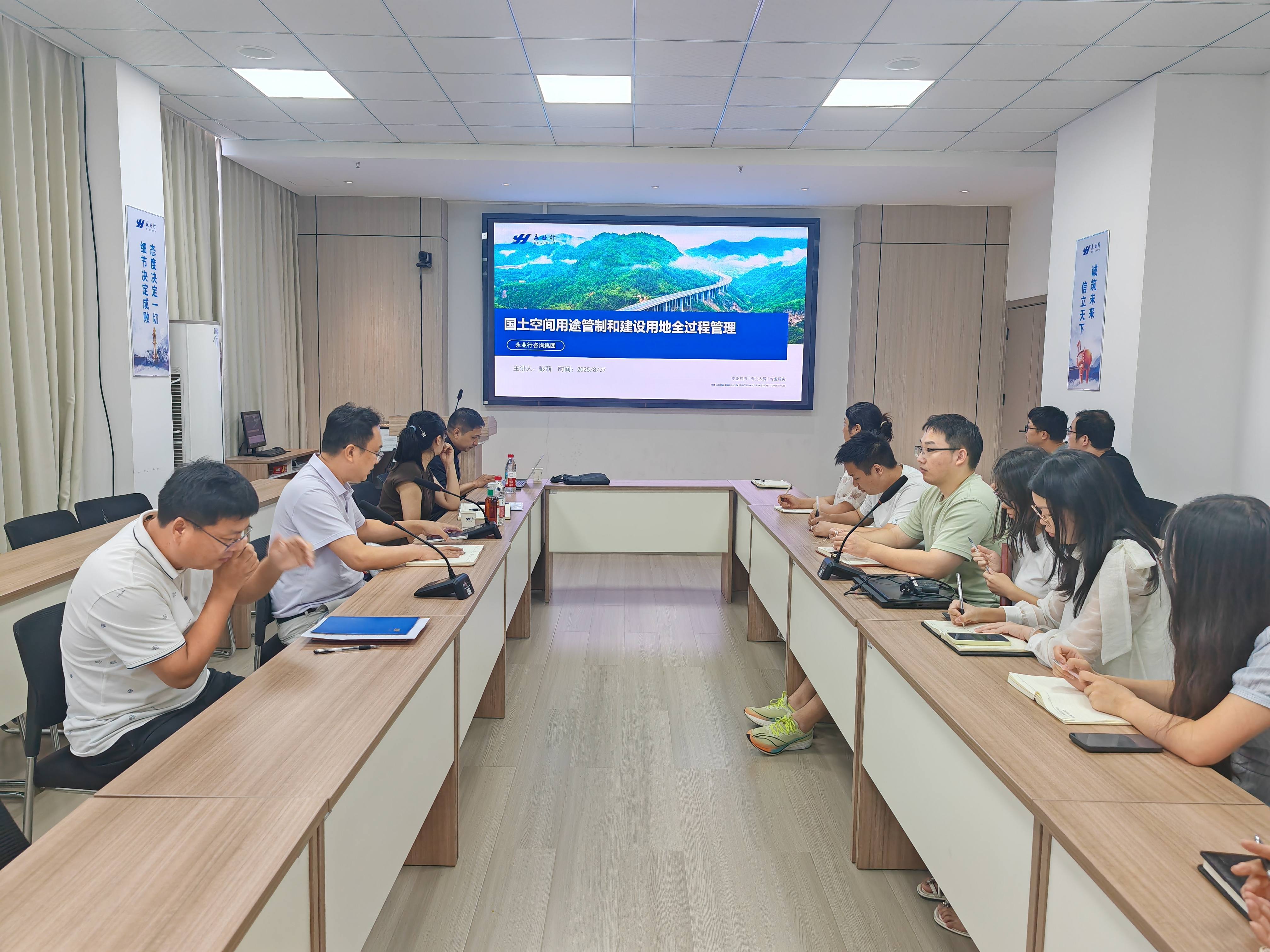 2025年8月27日,永业行技术中心总经理李冀云、资源环境事业群规划用地咨询三组副总监姚梦妮送技术到分部,围绕“国土空间用途管制和建设用地全过程管理”主题开展专题业务培训,并就用地预审代理业务与鄂东区同事进行深入交流与答疑。本次培训有力提升了鄂东区技术团队对政策法规与业务流程的精准理解,为增强团队专业能力与协作效能注入新动力。