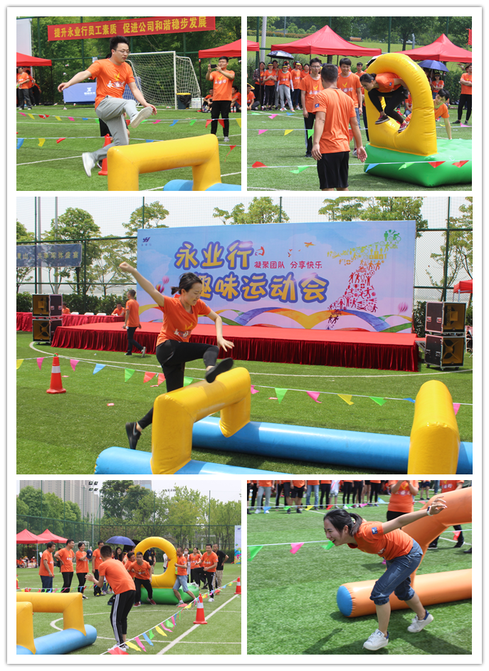 本届趣味运动会共设置了6个比赛项目,考验协作的蛟龙出海、活泼调皮的龟兔赛跑、惊险刺激的运转乾坤、奋勇冲刺的障碍接力、齐心协力的旱地龙舟、拼尽全力的拔河比赛……比赛过程挑战与趣味并存,不仅锻炼了团队协作能力,更是对队员们体力、耐力的考验。比赛现场,运动健儿的激烈角逐,激动人心;观赛团队的呐喊助威,震耳欲聋,大家不顾被烈日晒红的皮肤、被汗水浸透的衣衫,拼尽全力为团队荣誉而战,沉浸在运动带来的激情与快乐中。在冲过终点的瞬间,落后时的相拥鼓劲,胜利后的击掌庆祝,作为永业行人的自豪感与荣誉感油然而生。一轮轮激烈的角逐后,各组队员由比赛之初时的“矜持”快速发展成为相拥庆祝的战友。如果说一场比赛建立不了感情,那么,就来两场?