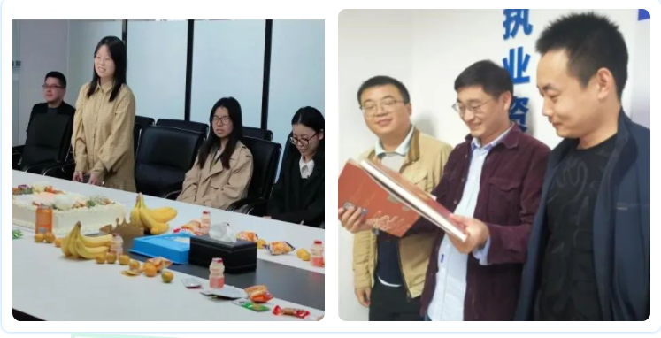 生日会,为大家精心准备的生日蛋糕,带着对寿星的祝福和深深的关爱,伴随着生日歌,大家一起吹下蜡烛许下祝福,将难忘的生日会定格!生日会上穿插趣味问答环节,大家纷纷举手抢答,将活动推向高潮。最后为寿星及新员工们发放精美礼物,送去美好祝福!