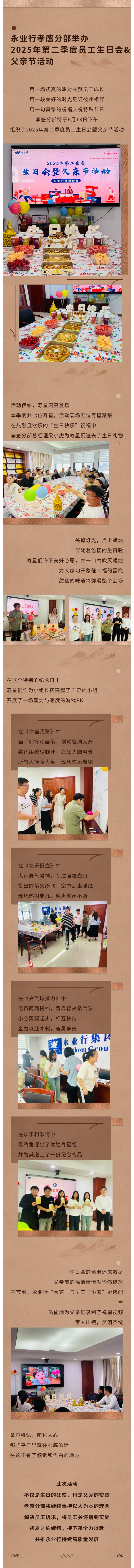 永业行孝感分部举办2025年第二季度员工生日会暨父亲节活动